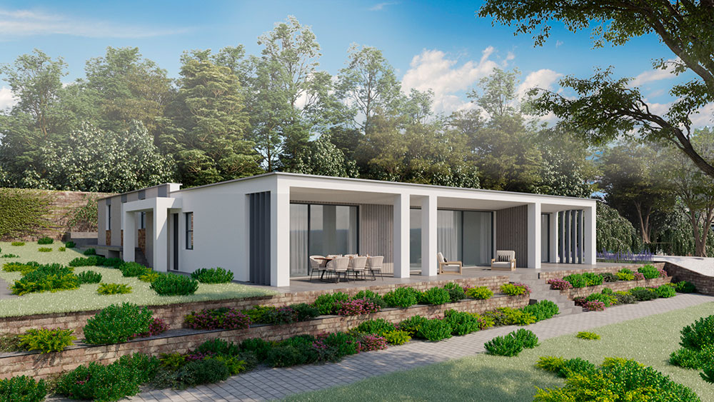 To design and build a new contemporary home making the most of views, sunlight and topography and integrations of renewable energies.